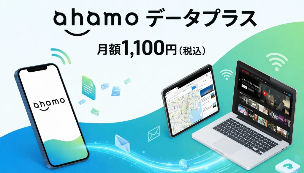 ahamoのデータプラスは月額1,100円で、ahamoのデータ容量をiPadなどのサブ端末と共有できる便利なサービスです。