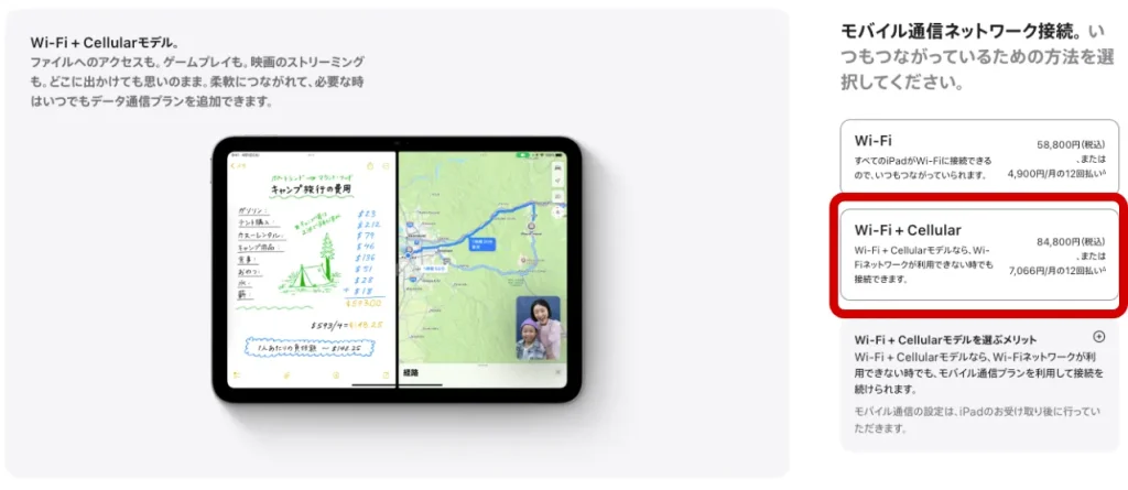データプラスを利用するには、SIMフリーのセルラーモデル対応iPadやタブレットが必要です。