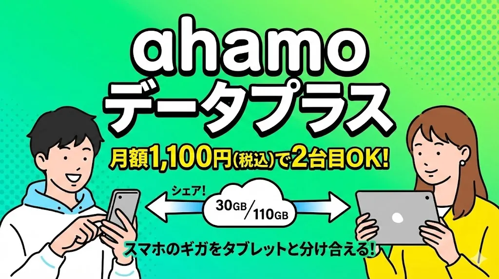 ahamoのデータプラスは月額1,100円で、ahamoのデータ容量をiPadなどのサブ端末と共有できる便利なサービスです。