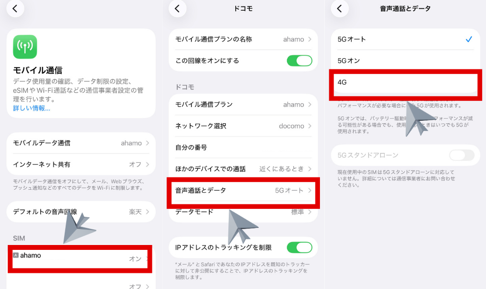 また、5Gで通信が安定しない場合は、4Gに切り替えて利用することで通信状況が改善することがあります。ぜひお試しください。