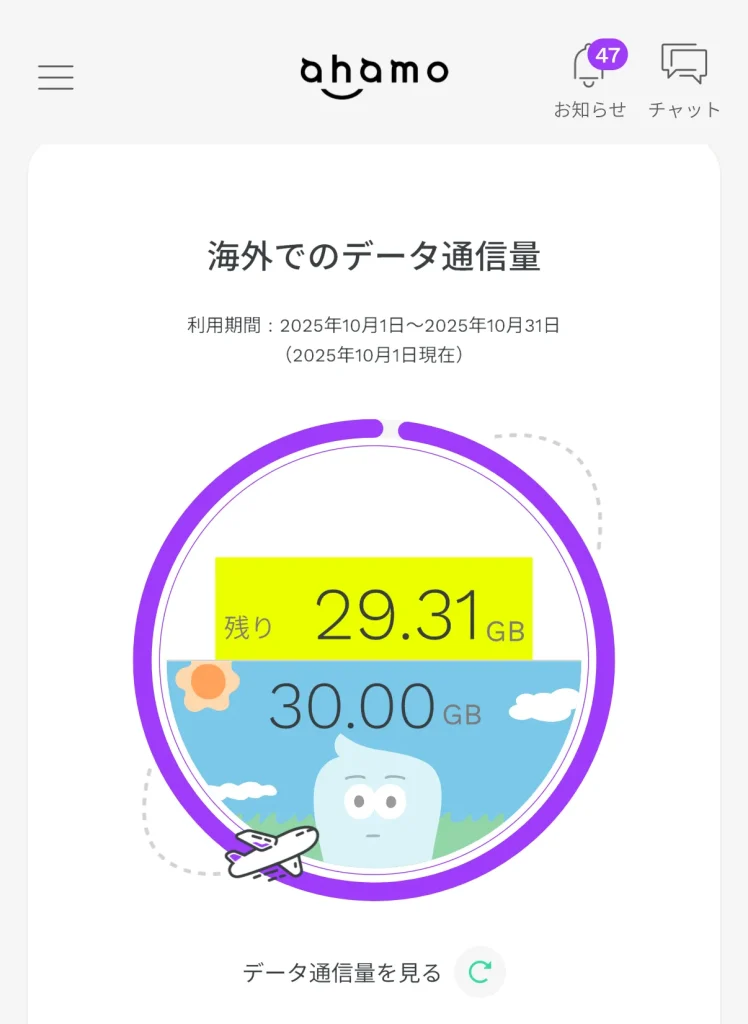 海外旅行時にもahamoは便利でした。追加料金なしで30GBまで使えるのは本当に助かります。サポートも充実しているので、安心して使えました