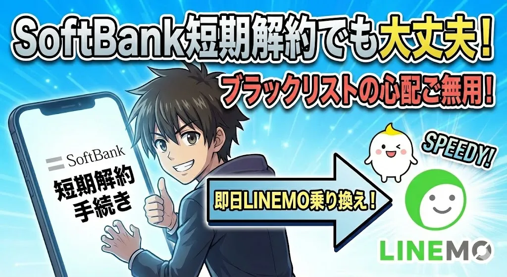 SoftBankのキャンペーンで最新スマホをお得に手に入れたものの、「毎月の料金が高いからすぐに変えたい…」と悩んでいませんか? しかし、契約してすぐに解約すると「ブラックリストに入って二度と契約できなくなるのでは?」という不安がよぎりますよね。 ... -