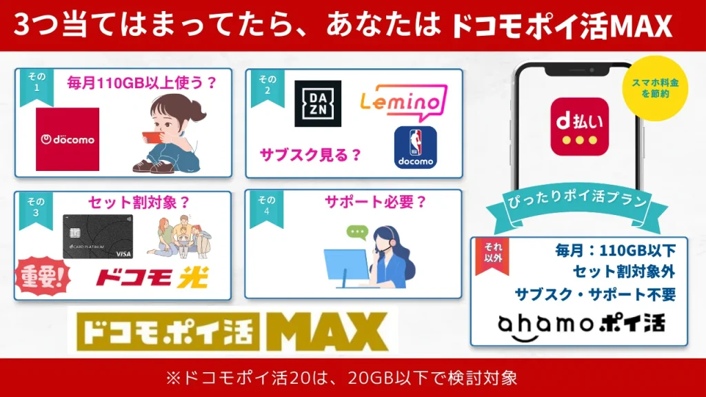 また、「ドコモ ポイ活20」と「ドコモ ポイ活 MAX」でプランの特徴が異なります。