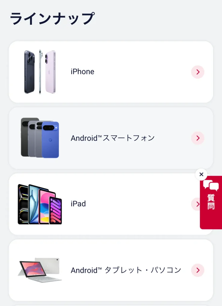 スマホとあわせて購入する場合は、購入したい端末のカテゴリーを選択してください。
