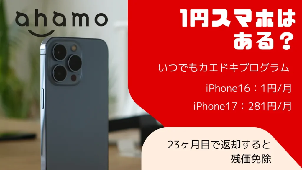いつでもカエドキプログラム」を使えば、3,251円(ahamo:2,970円 + iPhone17:281円)でiPhone17を利用することができます。