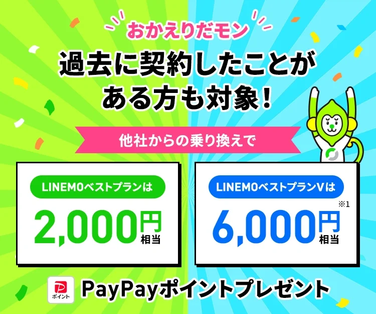 過去にLINEMOを契約されていた方は、「PayPayポイント付与キャンペーン」の対象外となります。