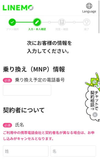 ソフトバンクやY!mobileからの乗り換えなら、契約情報や本人確認が自動で引き継がれるため、面倒な入力や書類のアップロードが一切不要で非常に簡単です。