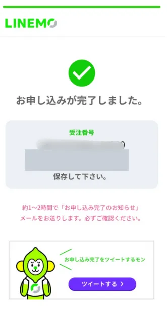 LINEMOは、15時までに申し込みを完了すると当日中に処理されます。