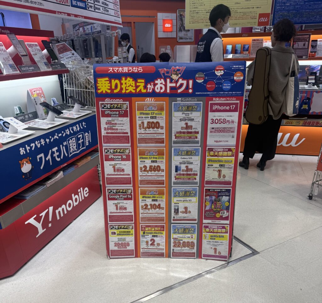 家電量販店でMNP特典を利用してSoftBankに乗り換えた際、