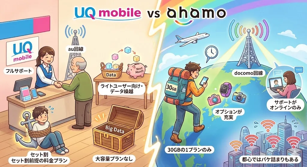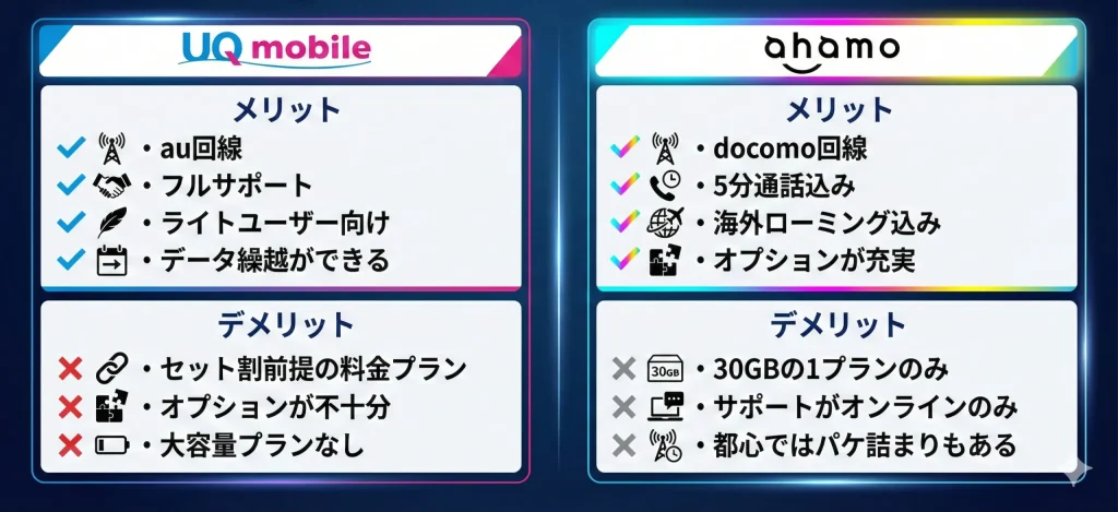 ahamoはUQ mobileに用意されていないキャリアオプションを提供しています。