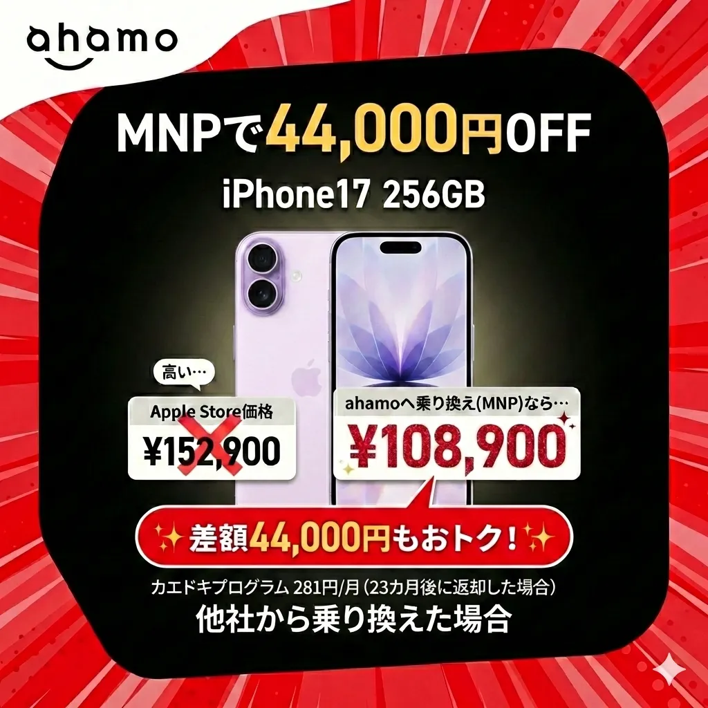 | iPhone17/256GB | 44,000円割引 |